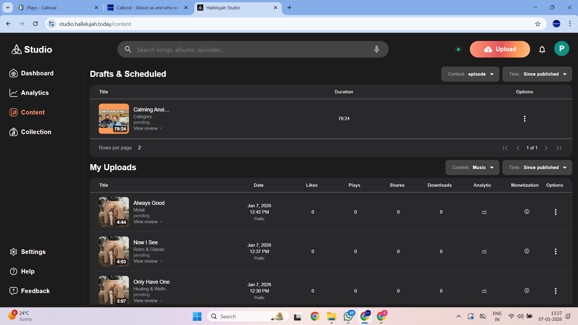 Upload, schedule, and manage all your music and podcast episodes from one content hub.